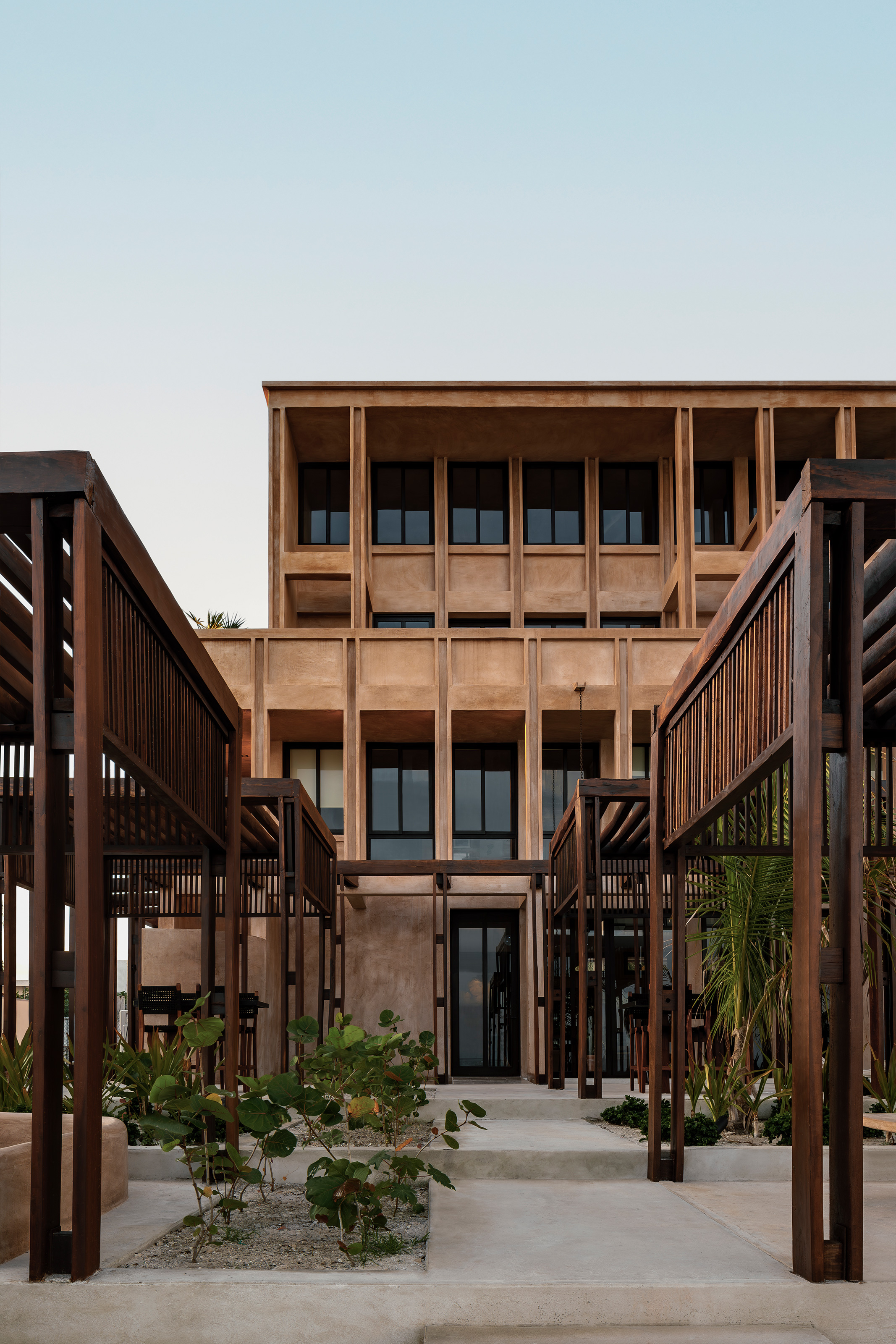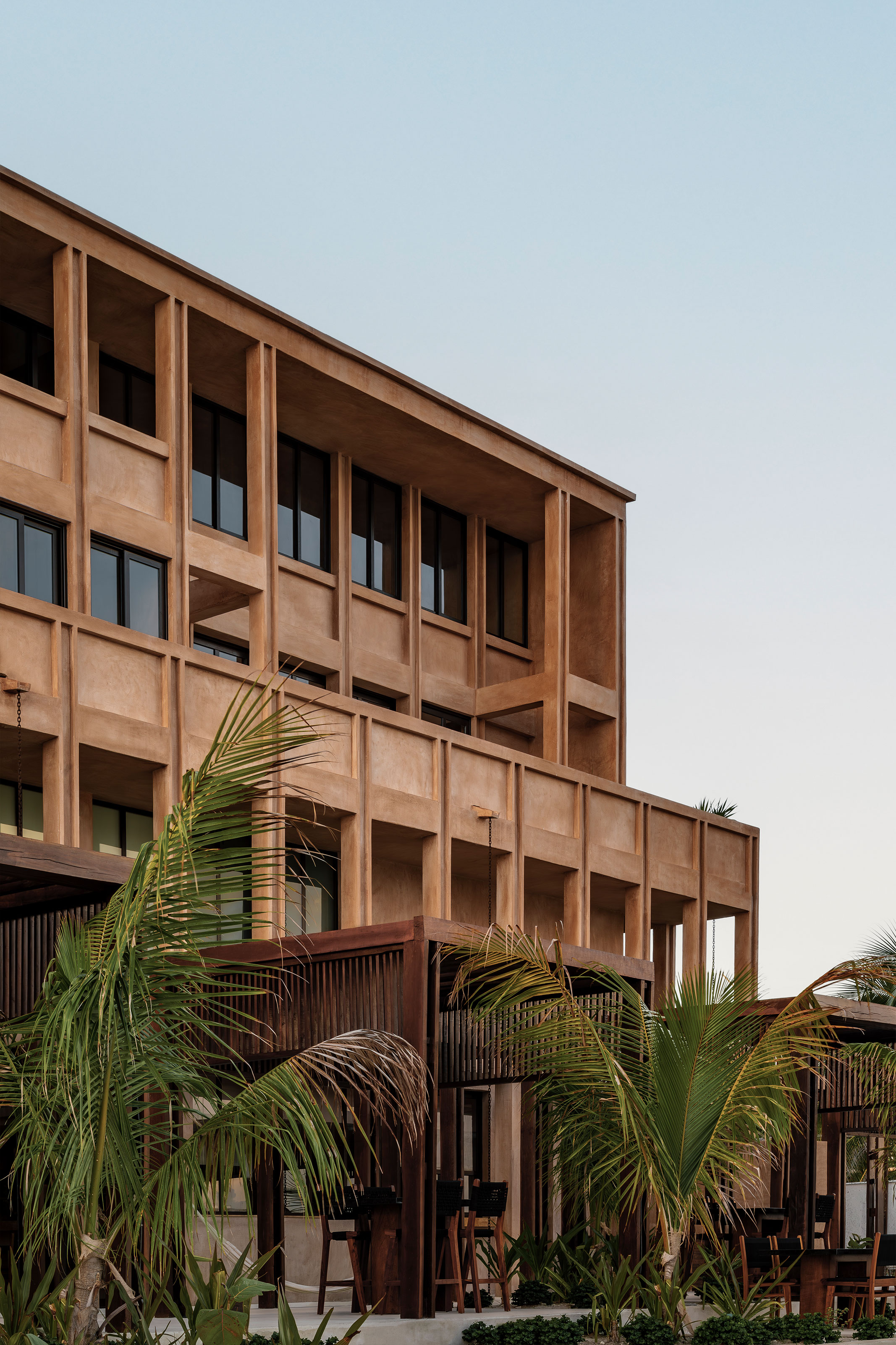 Ubicado en el puerto de Telchac, el parador turístico/hotel se basa en una serie de columnas sobre una retícula que modula todo el proyecto para darle un orden y un ritmo al espacio.