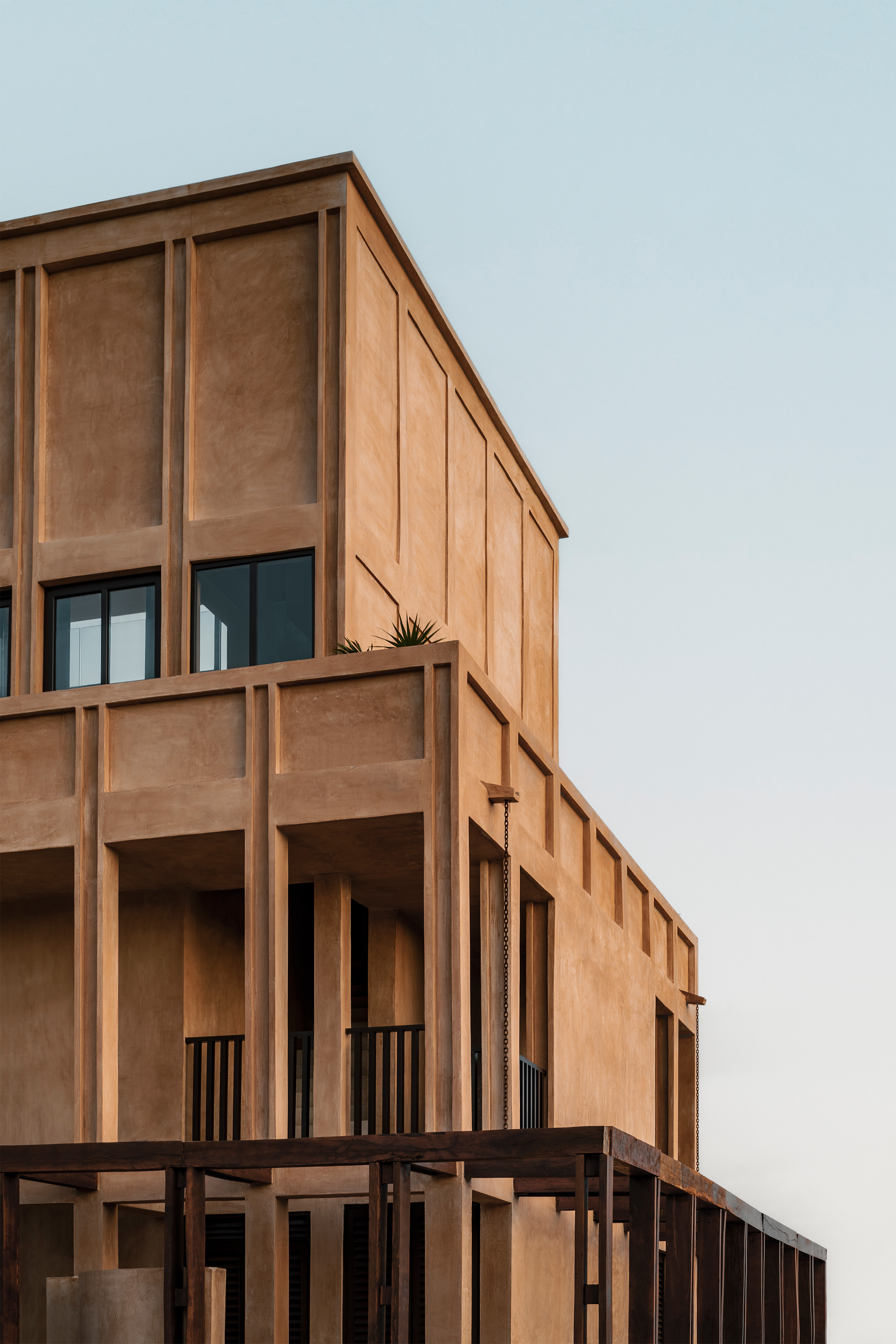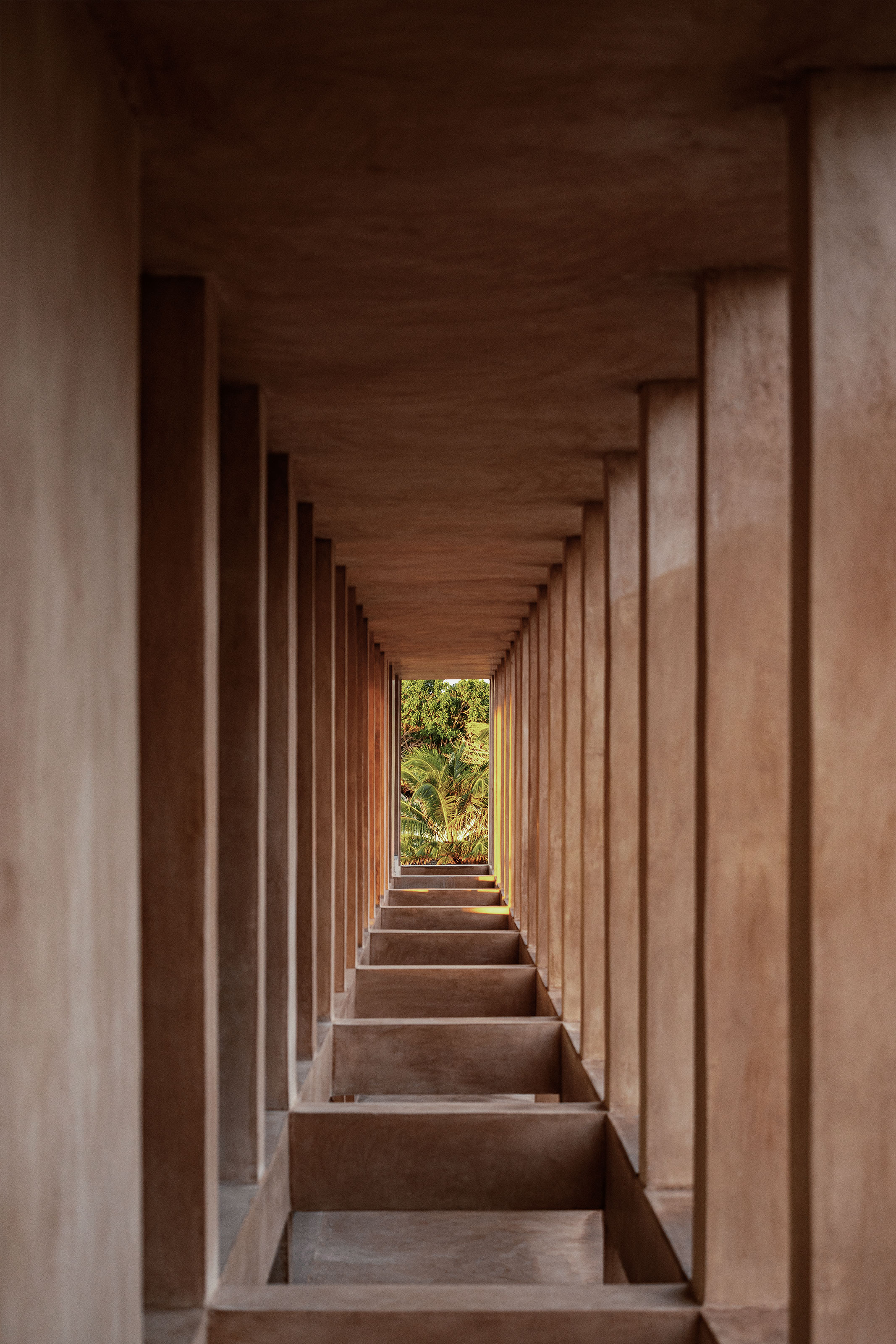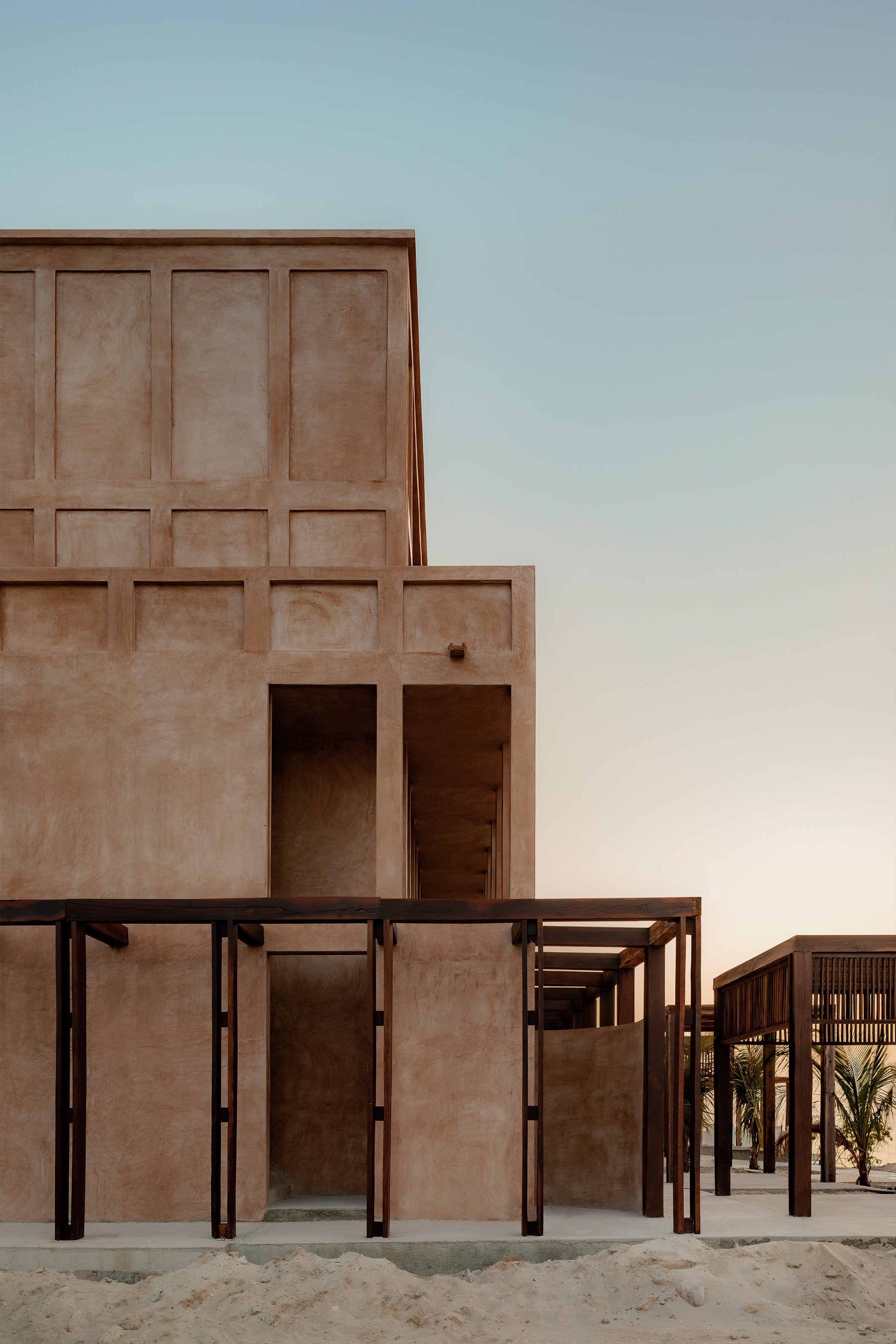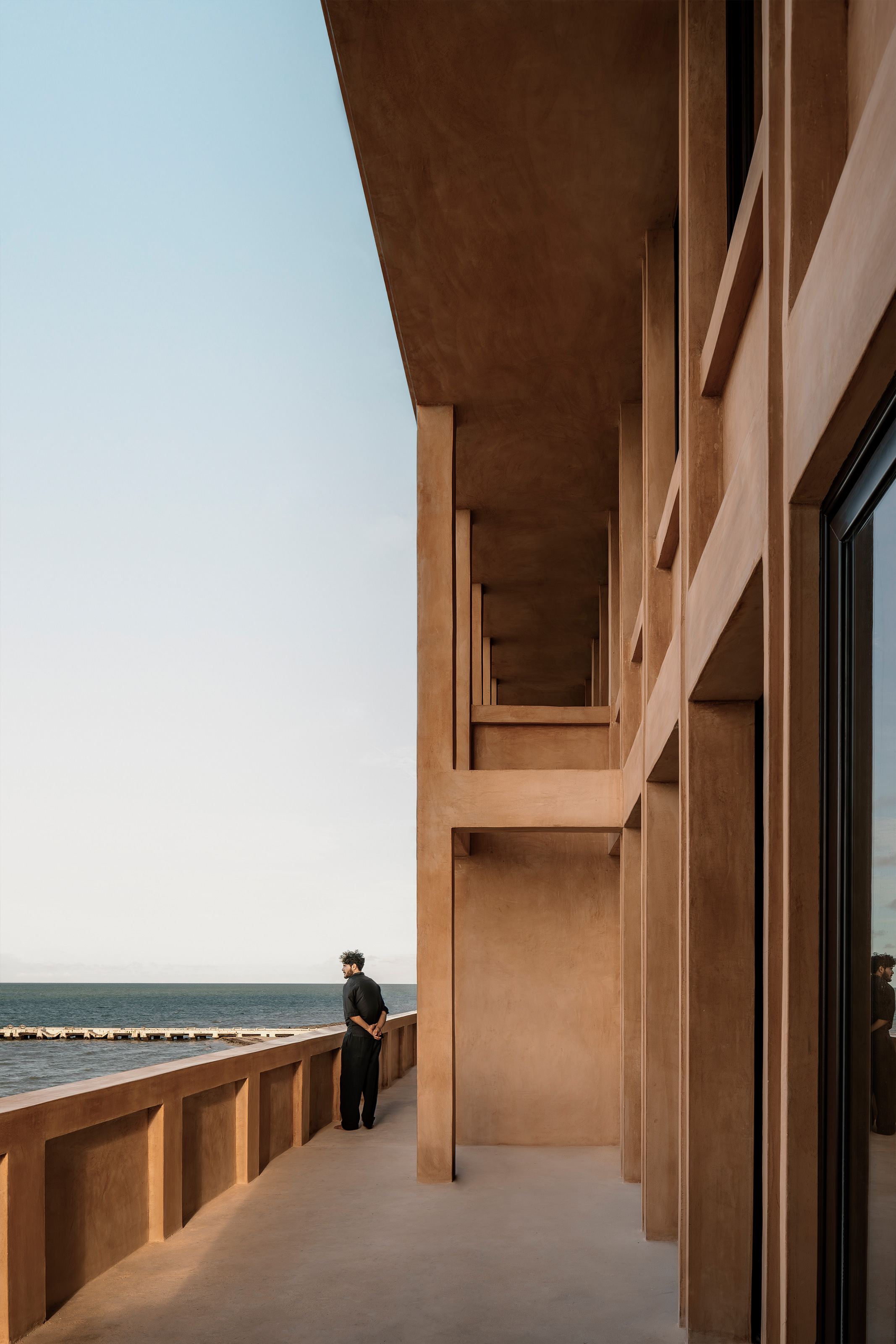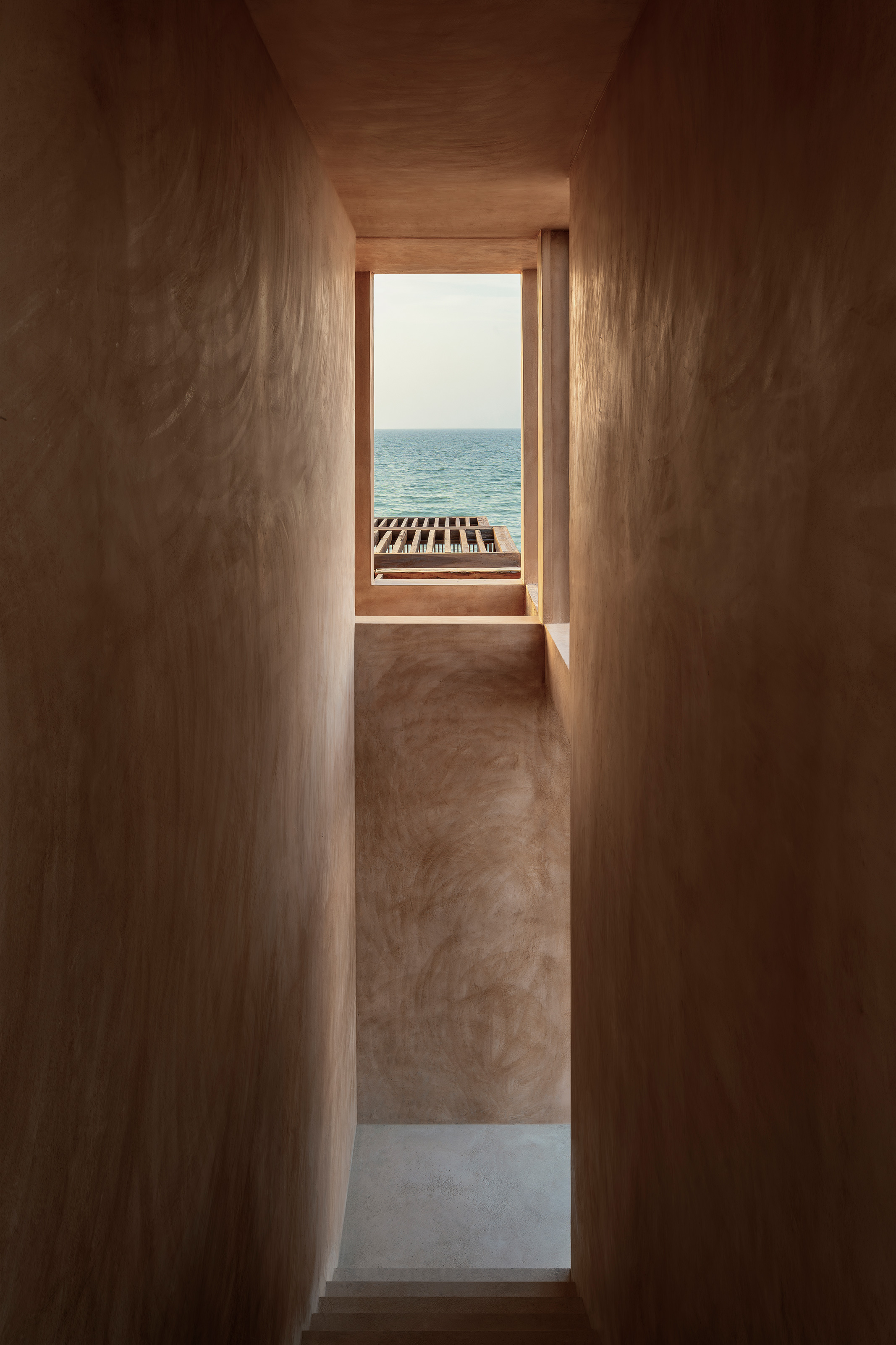 El color del edificio es una síntesis de los colores que encontramos en los alrededores: las salineras, la arena y la piedra. La intención de la pasta que aplicamos es que pareciera absorber el tono del sol y así obtener un edificio que muta de piel conforme pasa el día y el año.